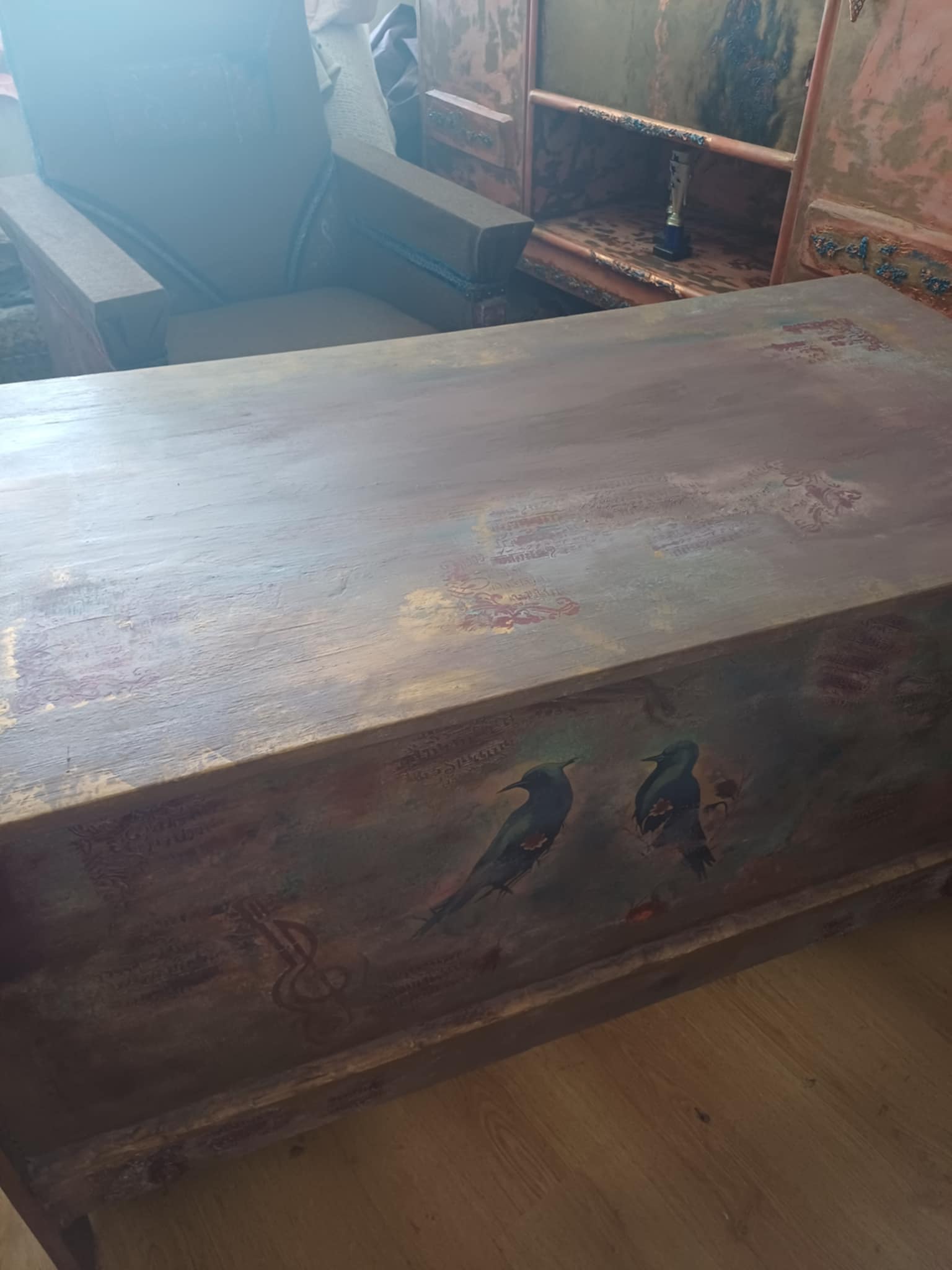 This set is handmade and unique, combining functionality, vintage charm, and distinctive artistic craftsmanship – perfect for interiors that value style, creativity, and individuality.